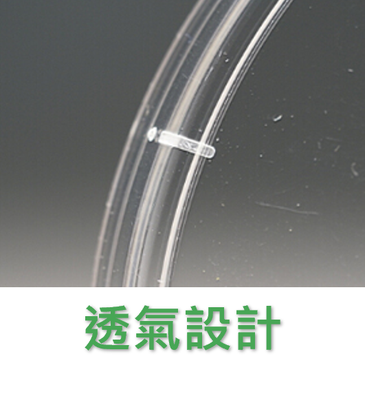 - 上蓋內有四個凸點設計,可於細胞培養時進行氣體交換
